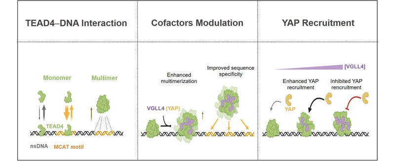 图13: VGLL4调控Hippo转录因子TEAD4结合DNA及招募YAP模型。