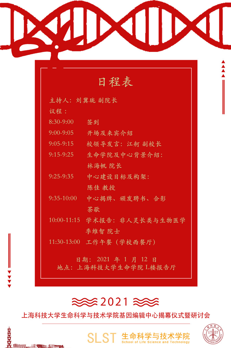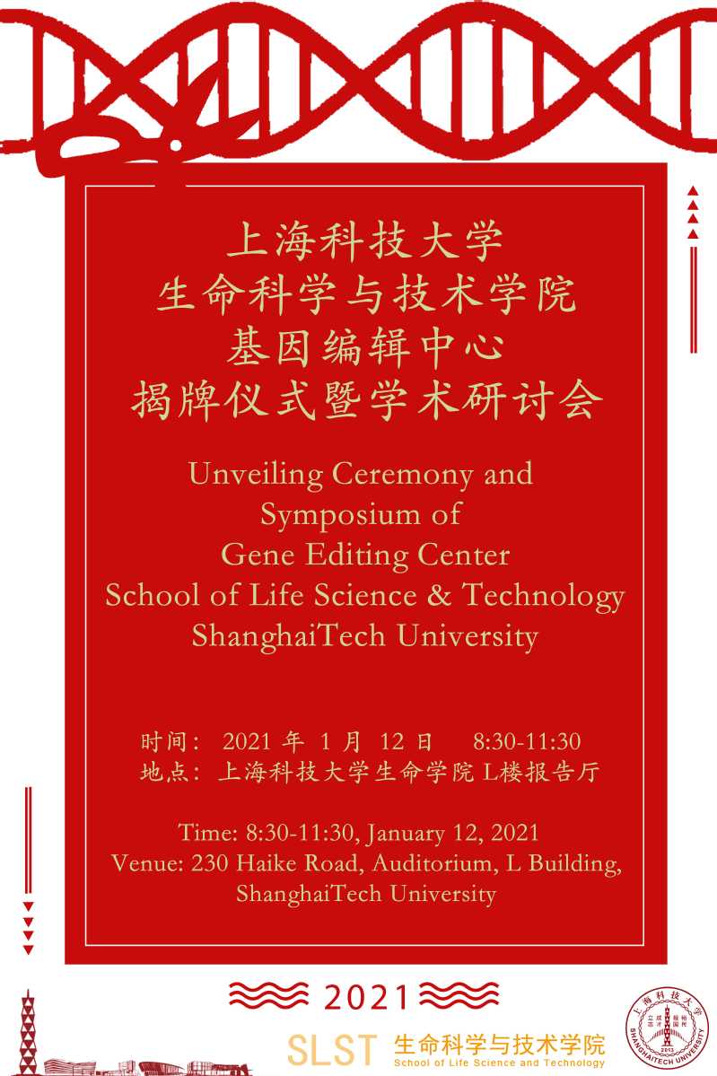 上海科技大学生命科学与技术学院基因编辑中心揭牌仪式暨学术研讨会